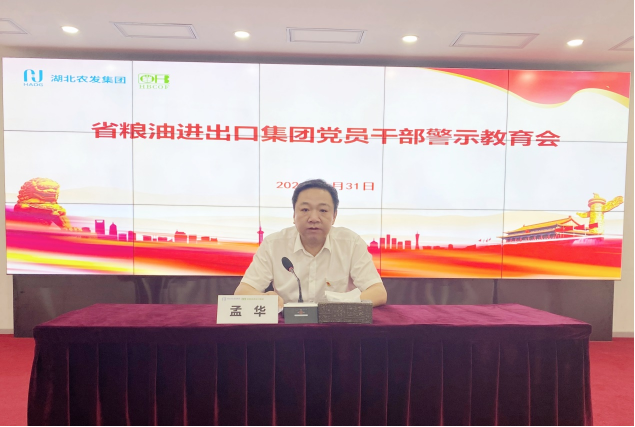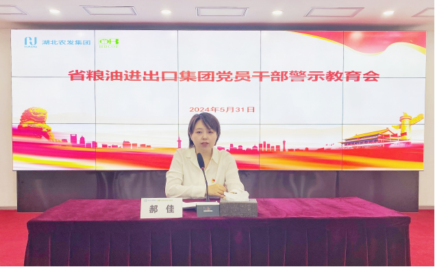 5月31日,省糧油進出口集團召開黨員干部警示教育會,集團黨委書記、董事長孟華主持會議并講話,集團黨委副書記、副總經理郝佳講紀律黨課。