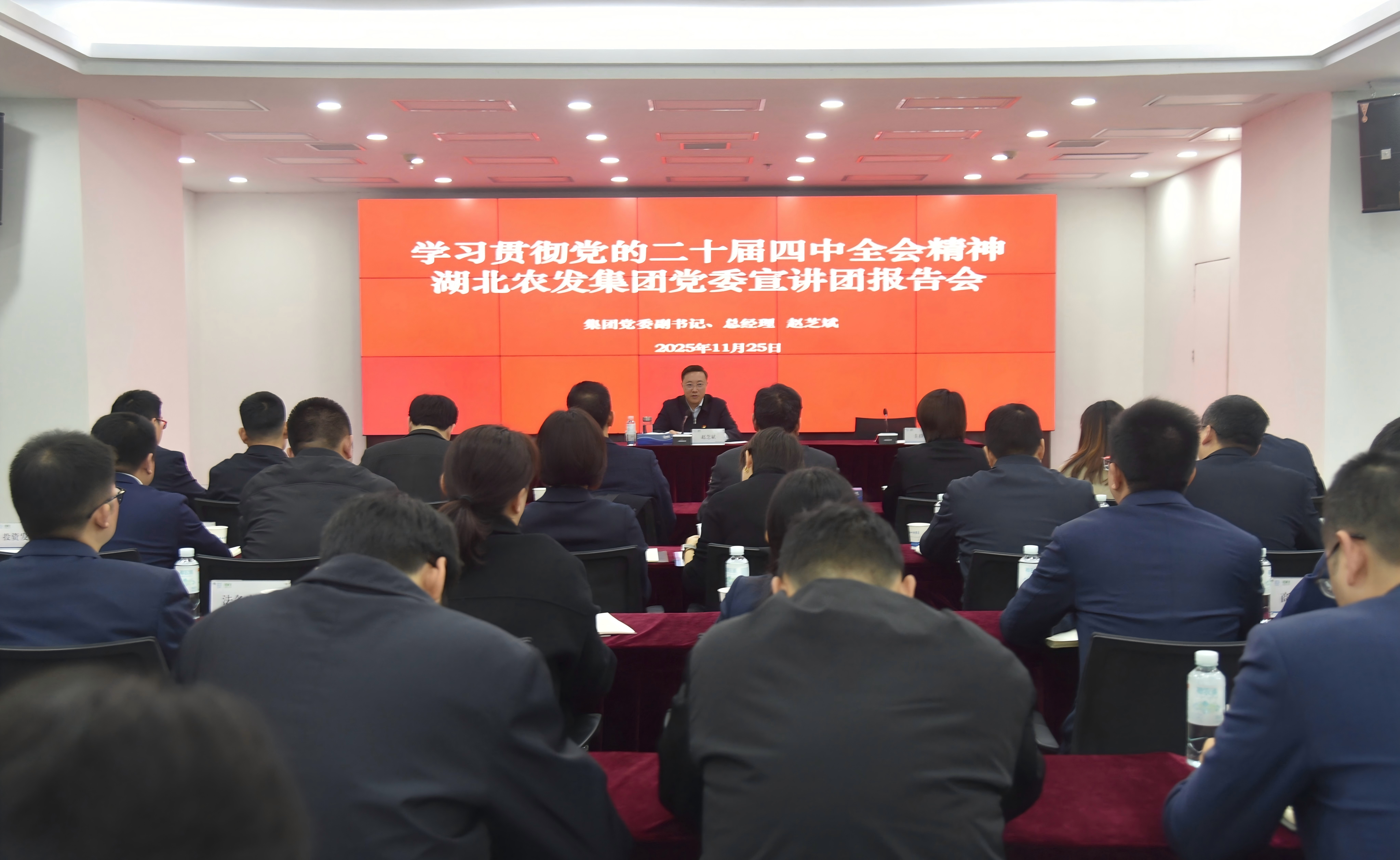 宣講報告會上,趙芝斌從深刻認(rèn)識全會召開的時代背景與重大意義、準(zhǔn)確把握“十四五” 時期發(fā)展重大成就與經(jīng)驗啟示、精準(zhǔn)領(lǐng)會“十五五” 時期發(fā)展總體要求與主要目標(biāo)、系統(tǒng)掌握“十五五”時期重點領(lǐng)域戰(zhàn)略任務(wù)等方面,進行了系統(tǒng)解讀和深入闡述。同時,從錨定戰(zhàn)略定位打造國企高質(zhì)量發(fā)展標(biāo)桿、深化產(chǎn)業(yè)升級加快農(nóng)業(yè)現(xiàn)代化步伐、擴大高水平開放服務(wù)雙循環(huán)格局等三個維度,明晰使命擔(dān)當(dāng)與發(fā)展方向。要求全體干部職工要把學(xué)習(xí)貫徹黨的二十屆四中全會精神作為重要政治任務(wù),深入學(xué)習(xí)領(lǐng)悟,將學(xué)習(xí)成果轉(zhuǎn)化為推動湖北農(nóng)發(fā)集團高質(zhì)量發(fā)展、創(chuàng)建全國一流現(xiàn)代農(nóng)業(yè)產(chǎn)業(yè)集團的生動實踐,為湖北加快建成中部地區(qū)崛起重要戰(zhàn)略支點貢獻農(nóng)發(fā)力量。