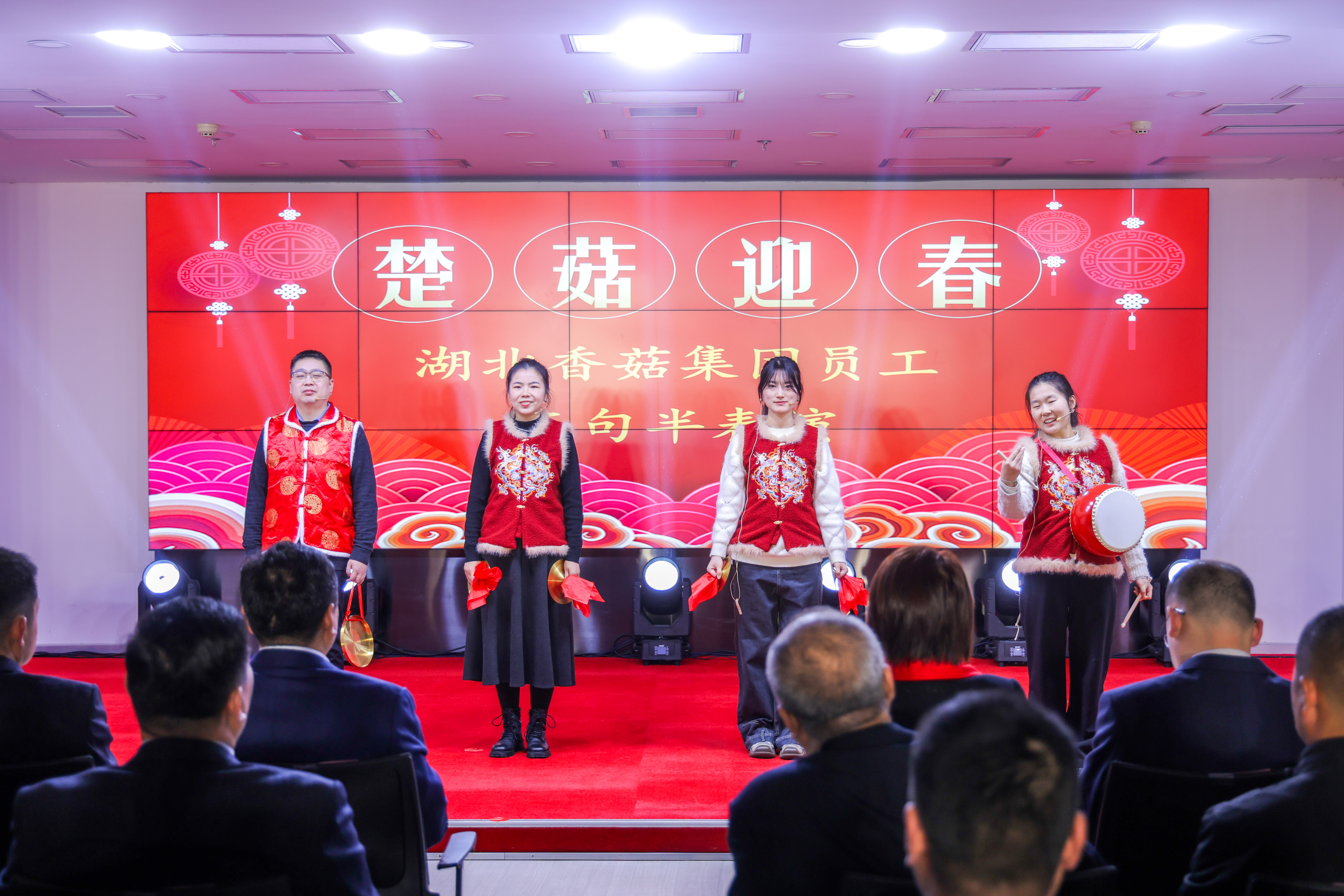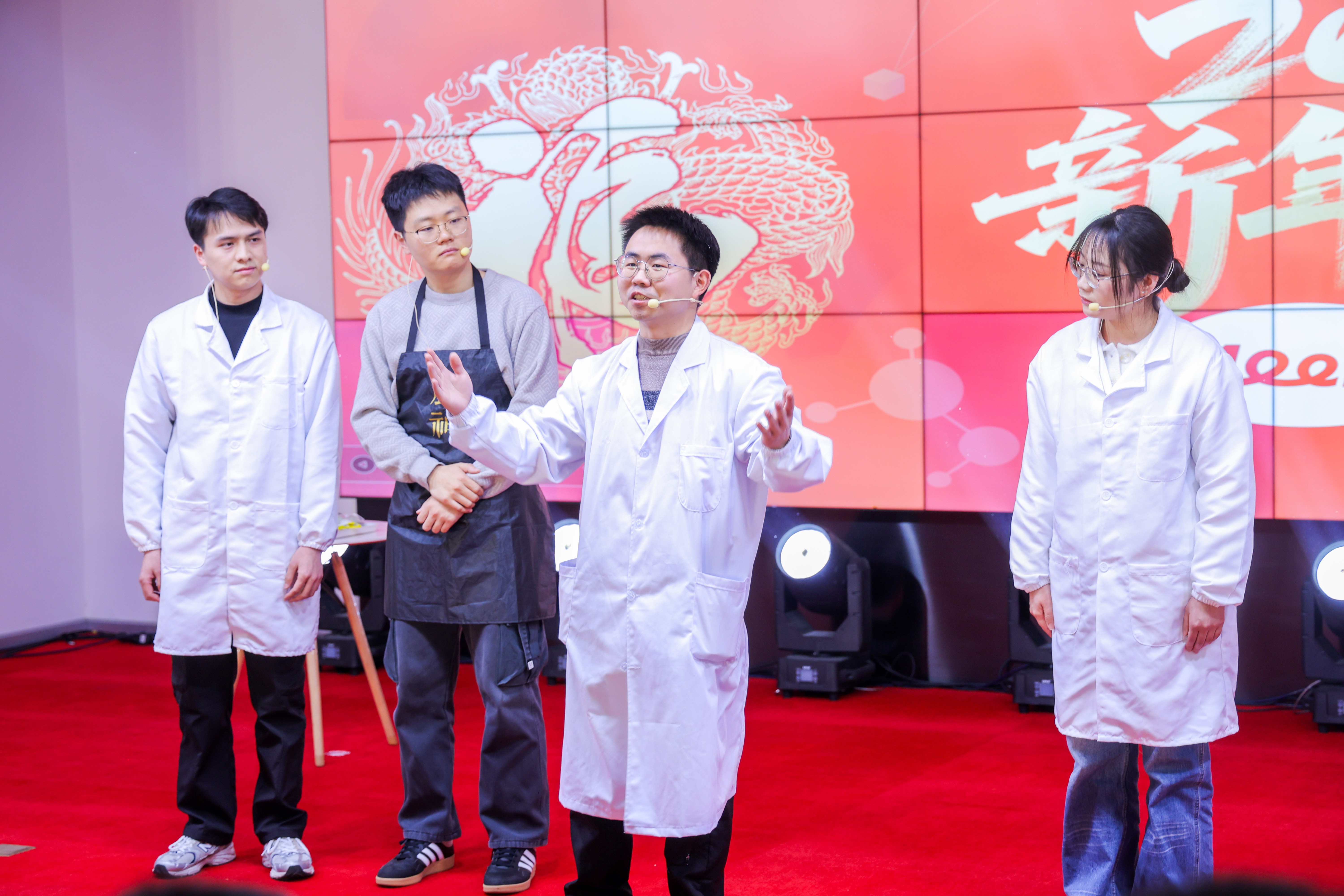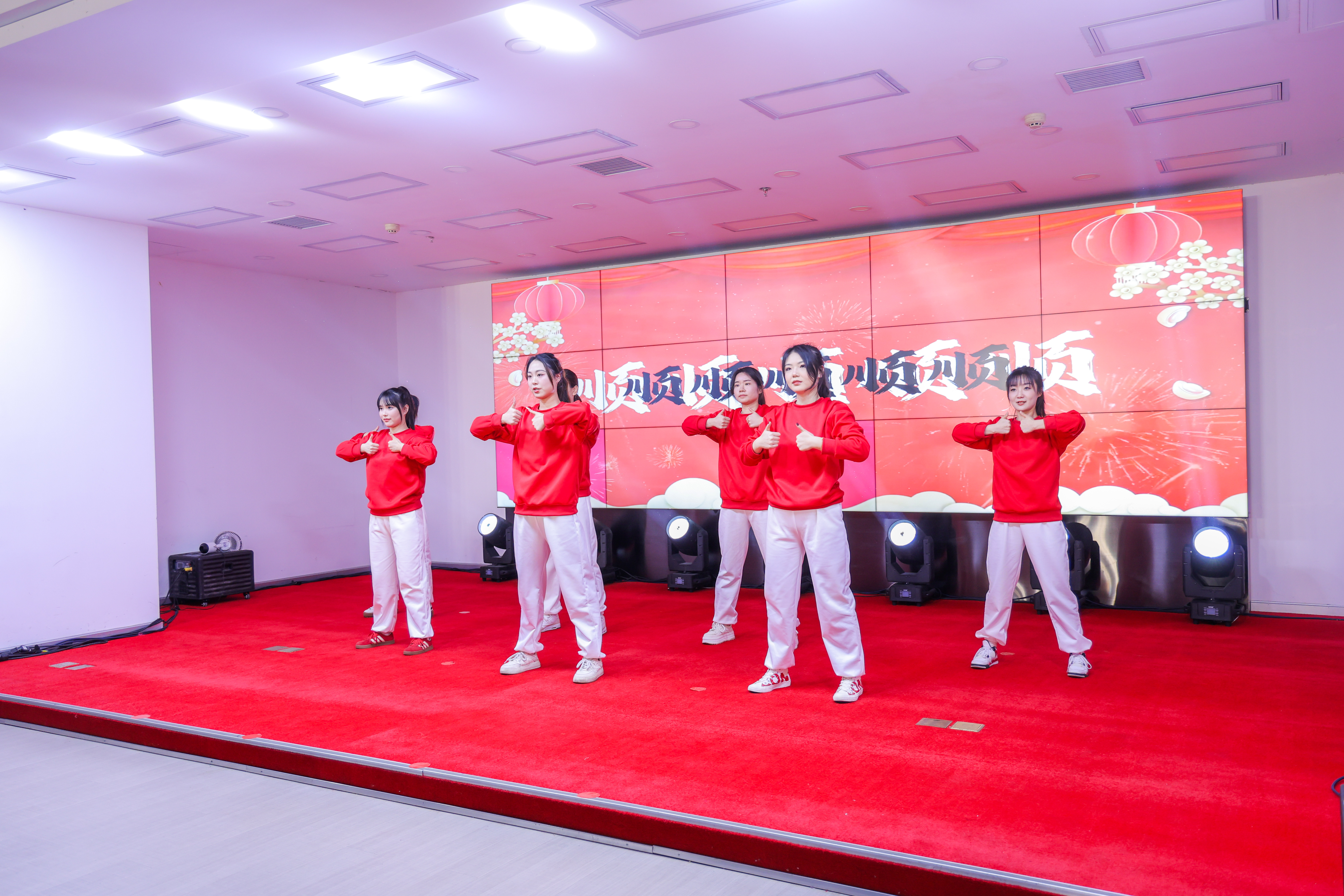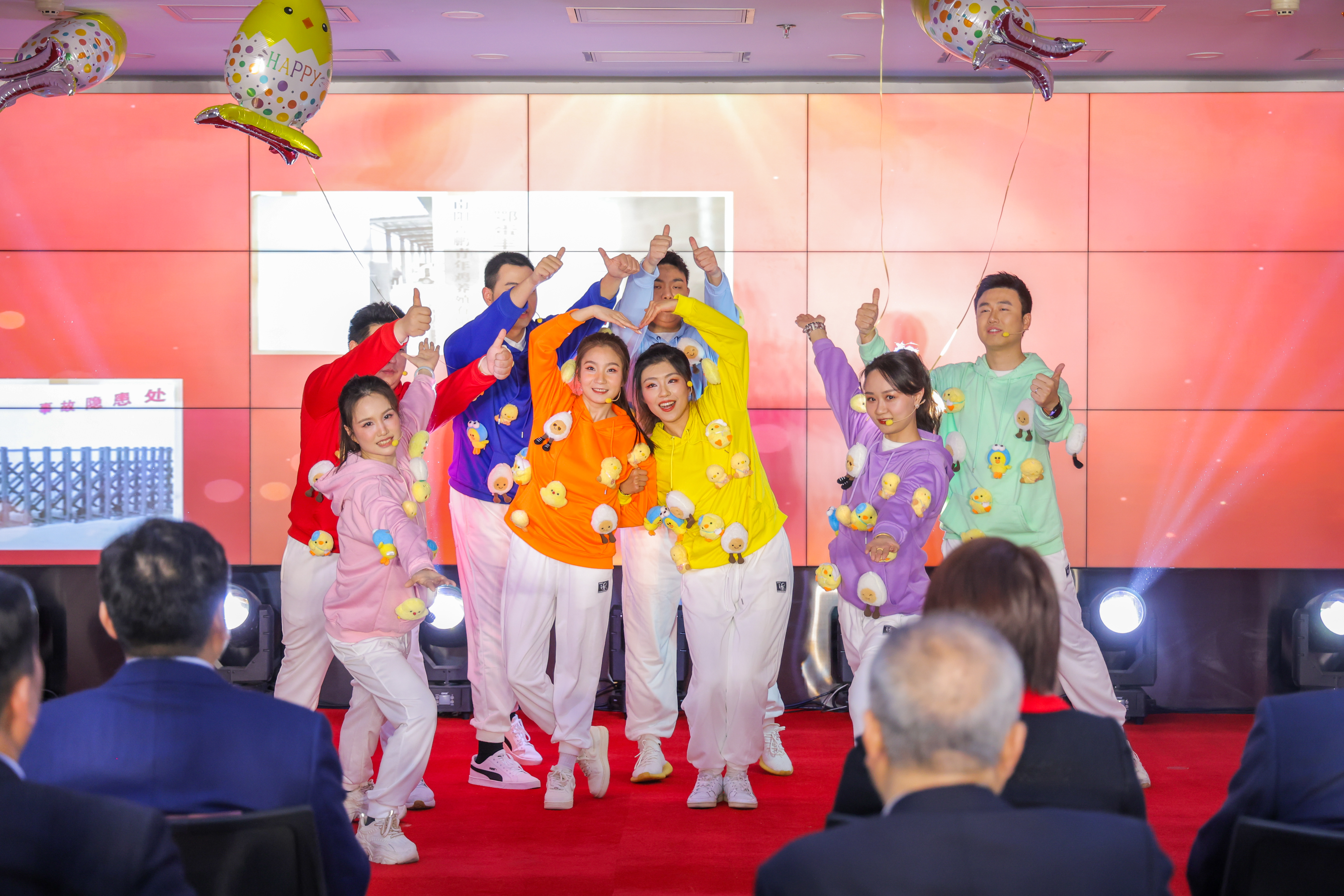 來自米來生物科技小品《蛋“卷”風云》作為第二篇章的首個節目,把“守護品質初心、振興產業發展”的使命擔當扛在肩上。五豐公司帶來的情景歌舞《蛋心筑夢·禽力前行》描繪著平凡崗位上不平凡的產業夢想。隨后,金潤豐公司歌舞表演《潮蛙上班族》將現場氣氛推向高潮,讓我們在disco的節奏里,致敬每一位職場人。集團各部室帶來的合唱歌曲《相親相愛》,讓我們沉浸在歌聲中感受著那份團結互助、同心共進的情誼。
