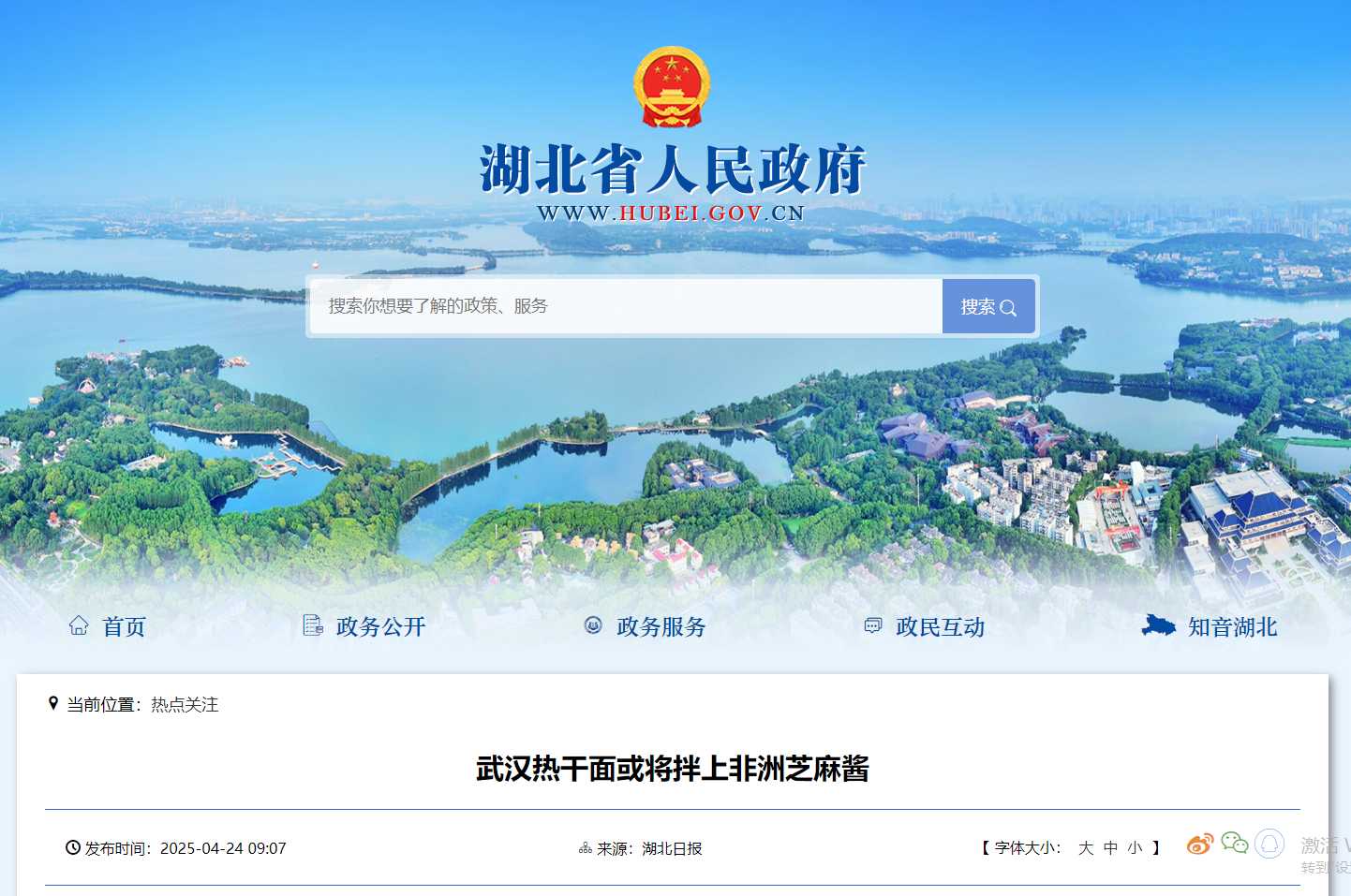 湖北省人民政府:武漢熱干面或將拌上非洲芝麻醬